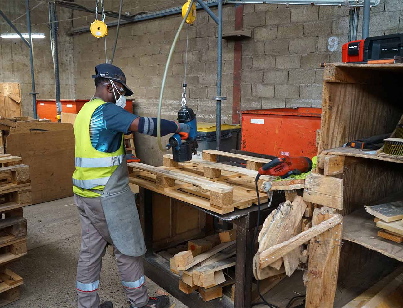 Après collecte de vos palettes, celles-ci sont déchargées en zone de tri sur l’une de nos 4 plateformes régionales. Notre équipe d’experts prend soin de les trier une à une et manuellement. Ainsi, chaque palette est minutieusement inspectée par nos opérateurs qui déterminent les réparations à effectuer. Les palettes en bon état sont orientées vers notre zone de stockage, les palettes détériorées partent dans nos ateliers de réparation. Tandis que les palettes trop abîmées, qui présentent plus de quatre éléments à réparer ou une traverse centrale détériorée, servent à réparer d’autres palettes perdues ou sont destinées au broyage. Les palettes EPAL, quant à elles, sont réparées selon la norme, avec des éléments en bois neuf uniquement. Nos équipes sont spécialisées sur chaque type de palettes et maîtrisent toutes les caractéristiques techniques et spécificités de chacune d’entre elles.